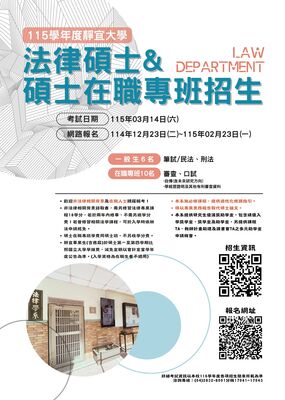 靜宜大學115學年度法律碩士班暨碩士在職專班招生~