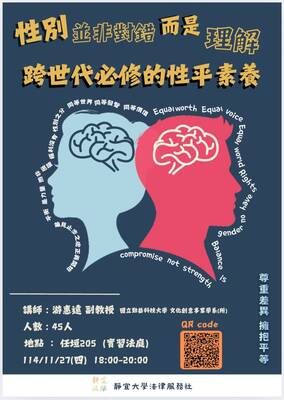 【法律系專題講座】跨世代必修的性平素養