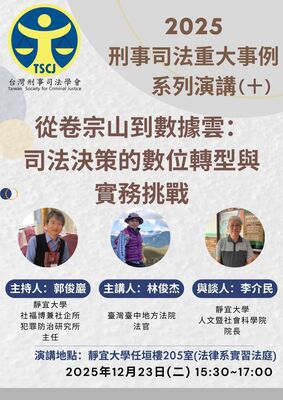 【法律學系專題演講】從卷宗山到數據雲:司法決策的數位轉型與實務挑戰