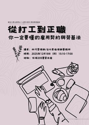 【法律學系專題演講】從打工到正職:你一定要懂的雇用契約與勞基法