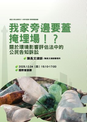 【法律學系專題演講】我家旁邊要蓋掩埋場!?—關於環境影響評估法中的公民告知訴訟
