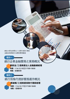 【法律學系專題演講】金融法制與銀行法實務講座